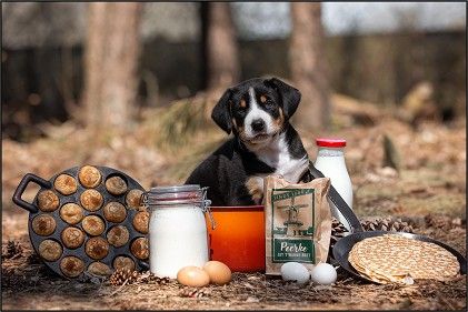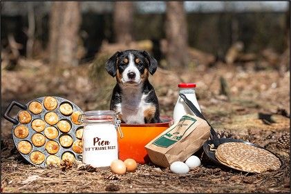 Hoewel het voor zowel Tiga als Meiske de eerste dekking was, verliep die heel vlot evenals de dracht. Bij de geboorte was wat hulp nodig maar daarna was het enkel genieten. Mama Meiske had volop melk en nam alle rust om het viertal te voeden. Hierdoor groeiden ze als kool en konden al op jonge leeftijd de wereld om hen heen verkennen. Samen met Meiske zijn de 2 reutjes en 2 teefjes veel buiten geweest waarbij Meiske er zichtbaar van genoot om met hen te spelen.